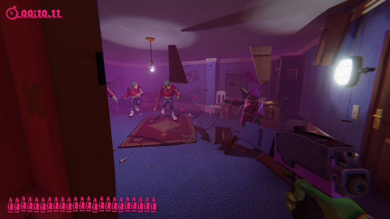 Стремительный экшен под напористый бит без права на ошибку, завёрнутый в цветастую ретровейв-картинку – очевидные параллели между Hotline Miami и Anger Foot возникают сами собой. Поначалу последняя действительно кажется идеальным преемником культового детища Dennaton Games, но чем больше пинками раскидываешь по углам громил и головорезов, тем очевиднее – это не так. Давайте вышибем эту дверь и разберемся, почему