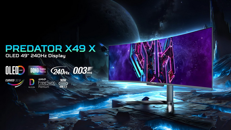 Компания Acer сообщила подробности о своём огромном 48,9-дюймовом игровом мониторе Predator X49 X с изогнутым OLED-экраном. О том, что компания собирается выпустить эту модель, стало известно ещё в декабре прошлого года, но технические характеристики производитель сообщил только сейчас. Источник изображений: Acer