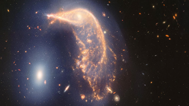 На юбилейном снимке «Джеймса Уэбба» позируют две сталкивающиеся галактики «Пингвин и яйцо»