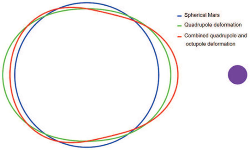 Современный Марс далёк от сферической и даже равномерно приплюснутой формы эллипсоида. Планета ассиметрична, что порождает вопросы к эволюции Марса. Американский учёный Михаил Эфроимский (Michael Efroimsky) представил на сайте arXiv.org копию отправленной в журнал Journal of Geophysical Research: Planets статьи, в которой он объясняет явно искажённую когда-то форму Марса. Всему виной — отсутствующая сегодня третья луна Марса, считает учёный. Как Нерио могла повлиять на форму Марса. Источник изображения: Михаил Эфроимский