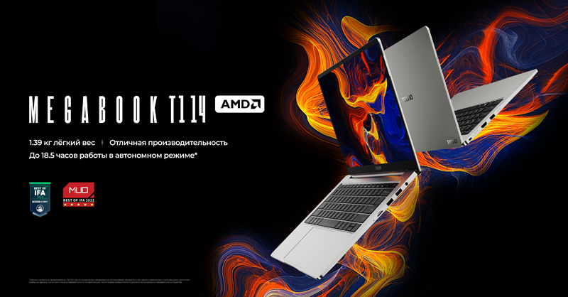 В России дебютировал ноутбук Tecno Megabook T1 с экраном 14” и чипом AMD Ryzen