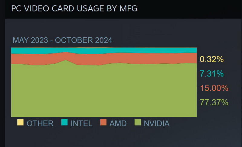 Площадка Steam опубликовала свежую статистику по конфигурациям ПК пользователей за октябрь. Данные показывают, что популярность дискретных видеокарт компании AMD на платформе по-прежнему оставляет желать лучшего. Также отмечается неумолимый рост популярности Windows 11 и борьба Intel и AMD на процессорном поле. Источник изображений: Steam