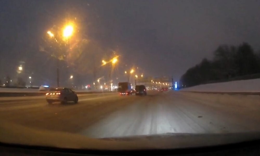 Дата на регистраторе сбита. Вчерашнее снежное утро на МКАДе.