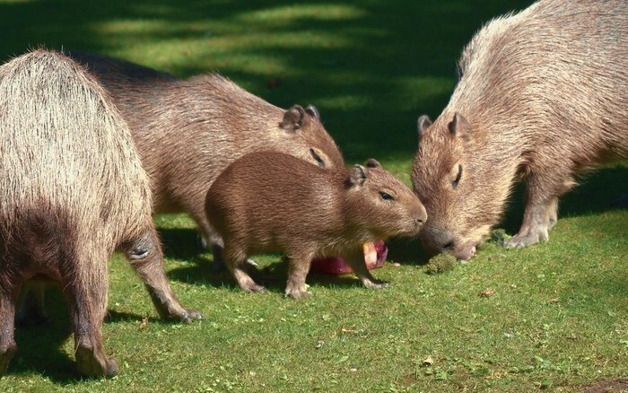Летом у самой фотогеничной пары капибар Кузьмы и Малой родились двое капибарят.
