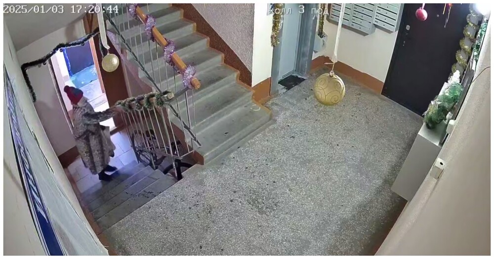 Камера наблюдения, установленная в одном из подъездов города Тюмени, запечатлела недостойный поступок женщины. Незнакомка сорвала новогоднюю мишуру и бросила на пол.