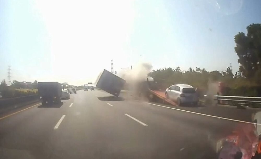 Видео из Китая. Пишут, что водитель повредился, но жив, в больнице.