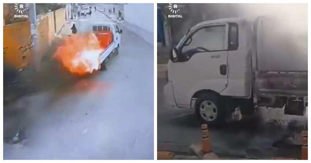 В Ираке мужик приехал на загоревшейся машине к пожарным, чтобы они её потушили