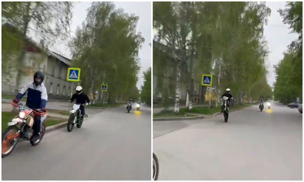 Молодёжь на питбайках ездить ещё не научилась, но уже пытается гонять на заднем колесе. К счастью в этот раз они влетели друг в друга, а не в какого-нибудь случайного прохожего или автомобиль. Кемерово.